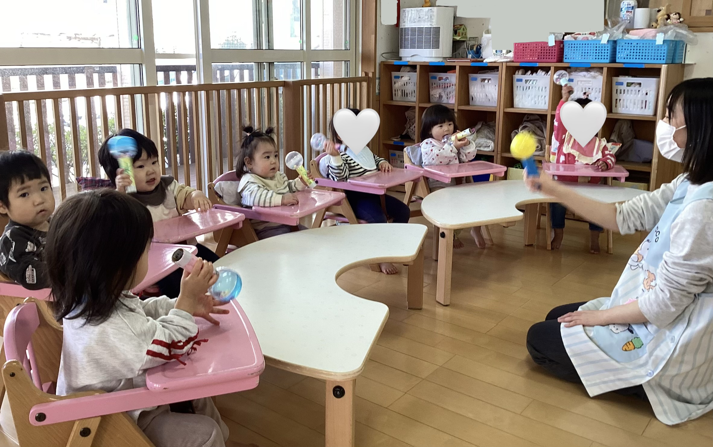 歌に合わせてマラカスをシャカシャカ♪ことり組ではペンでお絵描きしてマラカスを作り、たくさん演奏して楽しみました!