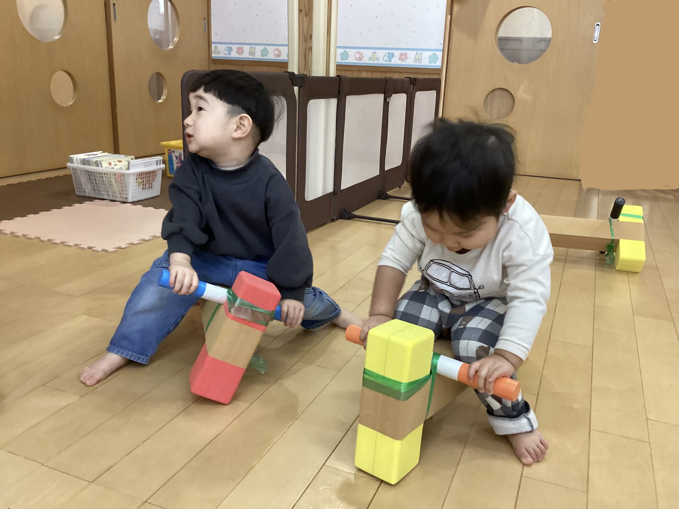 身体を動かすことが大好きな子どもたち⭐︎お部屋では、ソフト積み木に登ったり、トンネルをくぐったりして元気に遊んでいます。